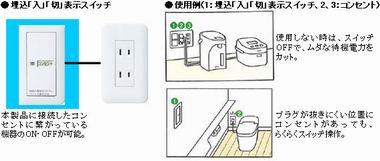 パナソニック電工(株)は、プラグを抜くことなく、手軽に電気製品の待機電力のカットが図れ、ムダな電気代の節約やCO2削減に役立つ「こまめにスイッチ」を2010年3月21日より発売しだしました。